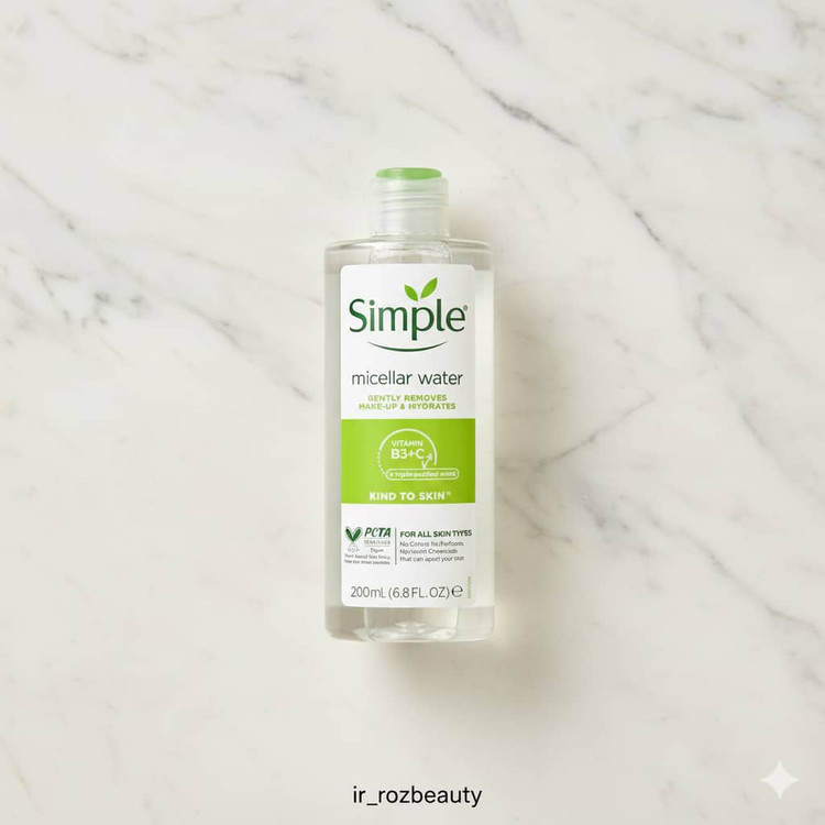میسلار واتر سیمپل آرایش، آلودگی و چربی رو بدون ایجاد خشکی یا سوزش پاک میکنه و پوست رو تمیز، نرم و آرام نگه میداره 💚